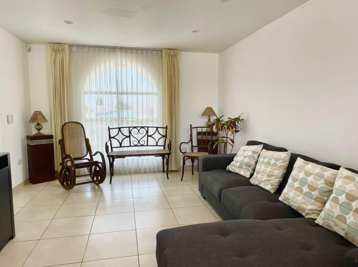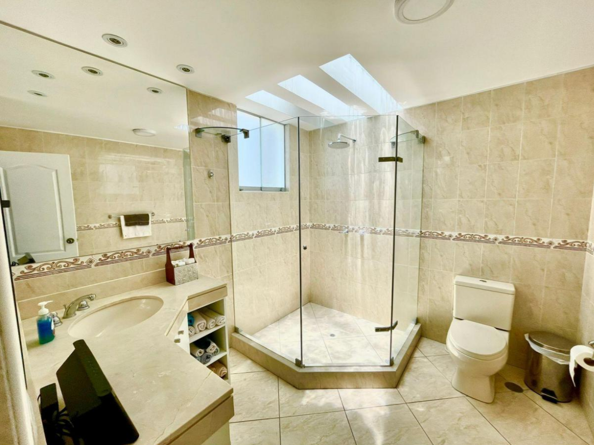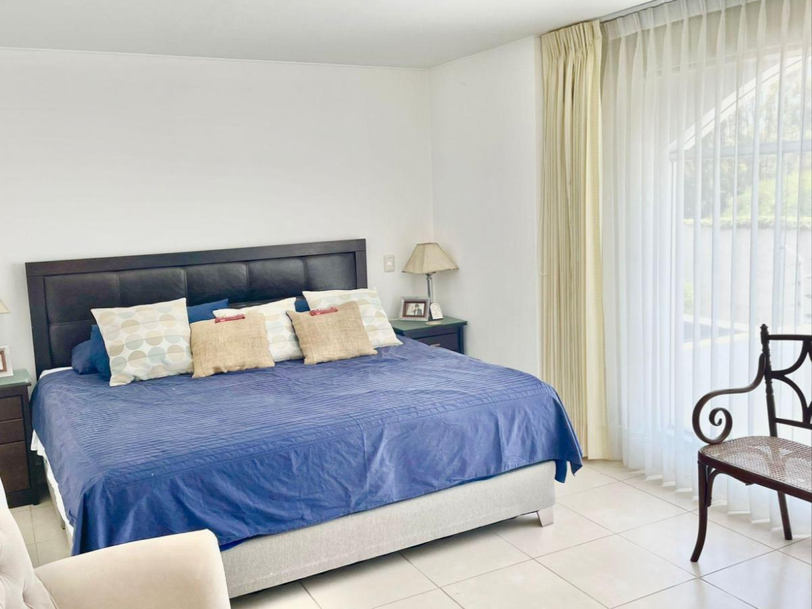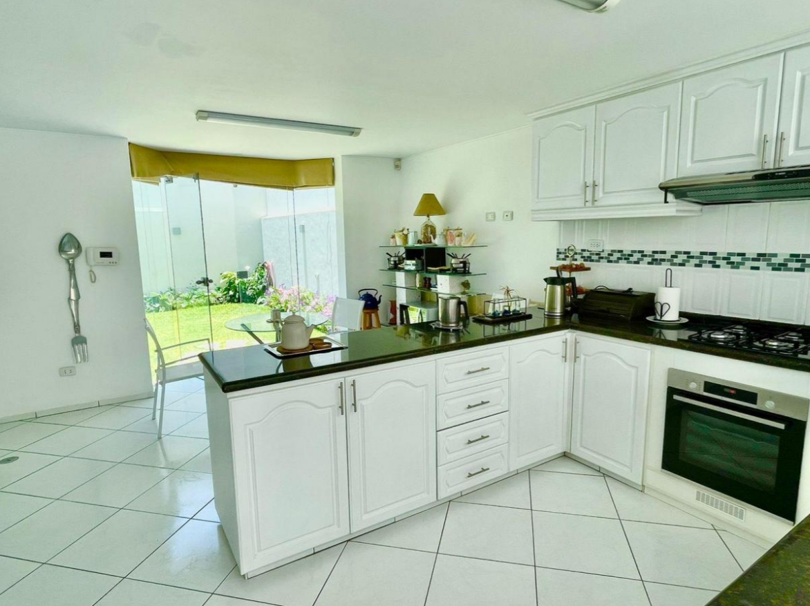 En el exterior, disfruta de áreas verdes, jardín(es), patio, terraza y área de BBQ. Además, posee 2 estacionamientos. Para mayor seguridad, dispone de caseta de guardia, cerca eléctrica, sistema de alarma de seguridad y video vigilancia, además de guardianía/seguridad privada.